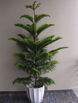 南洋杉屬常綠喬木,原產澳大利亞諾和克島,它的名稱繁多,按屬地稱謂有英杉、澳杉、諾和克杉、南洋杉。按葉稱謂有異葉南洋杉、小葉南洋杉、美麗南洋杉,按形態稱有塔式南洋杉、海南南洋杉等。我國引進有肯氏南洋杉和諾和克南洋杉等品種,肯氏南洋杉主干直立整樹呈塔型,枝輪生水平伸出,輪距均勻、層次分明,無剌,外觀端駐。為觀葉植物上品,多為盆栽。而諾和克杉為園林觀賞佳品,地栽可達30米以上高度,喜溫暖和陽光,既能忍受40℃高溫,也能耐得零下5℃的低溫,可在北緯27℃線左右露地生存(諾和克島位于南緯27℃)。